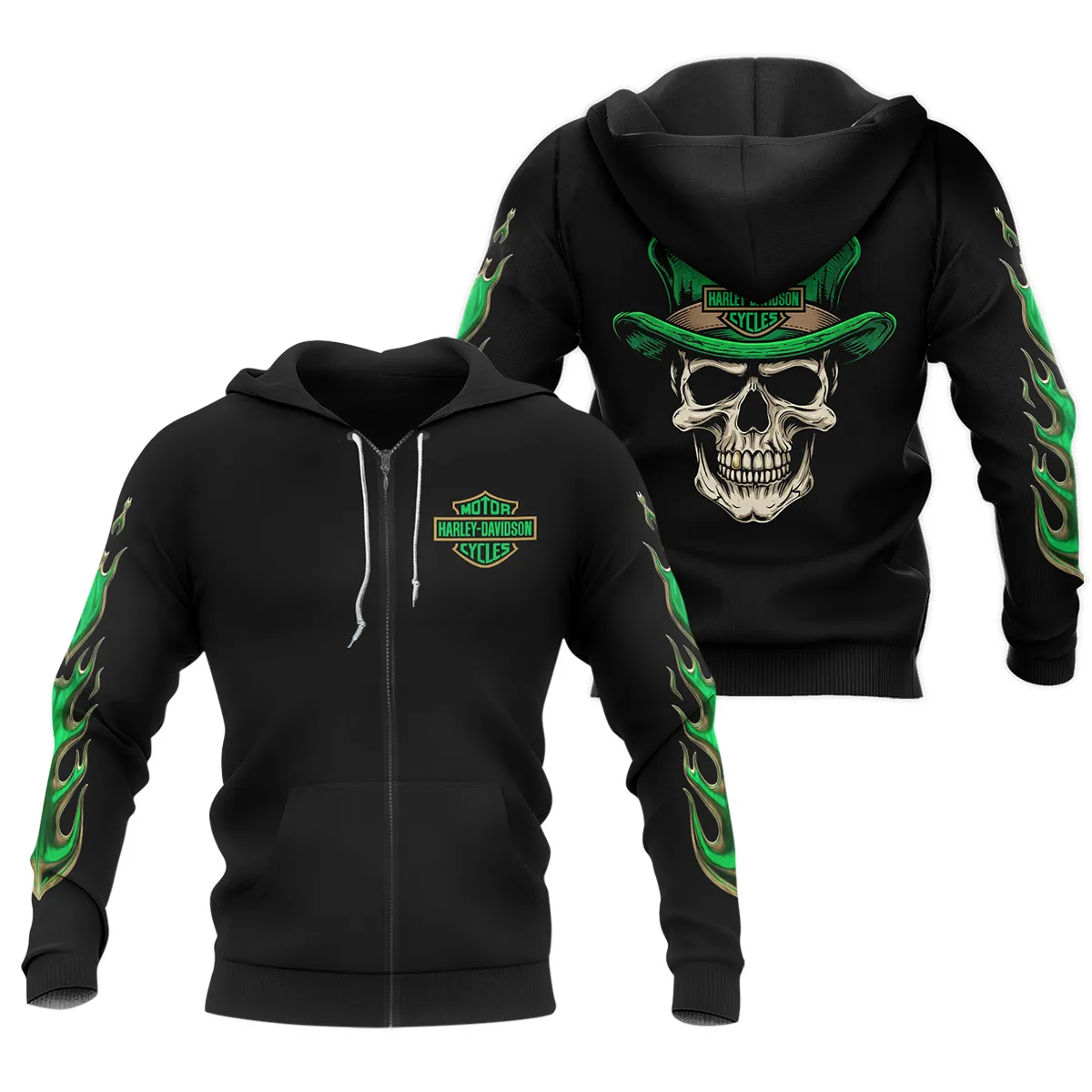 Harley-Davidson Motorcycle Green Phantom Zipper Hoodie All Over Prints Gift Fan Love QTVAHL250226A15-ZHD