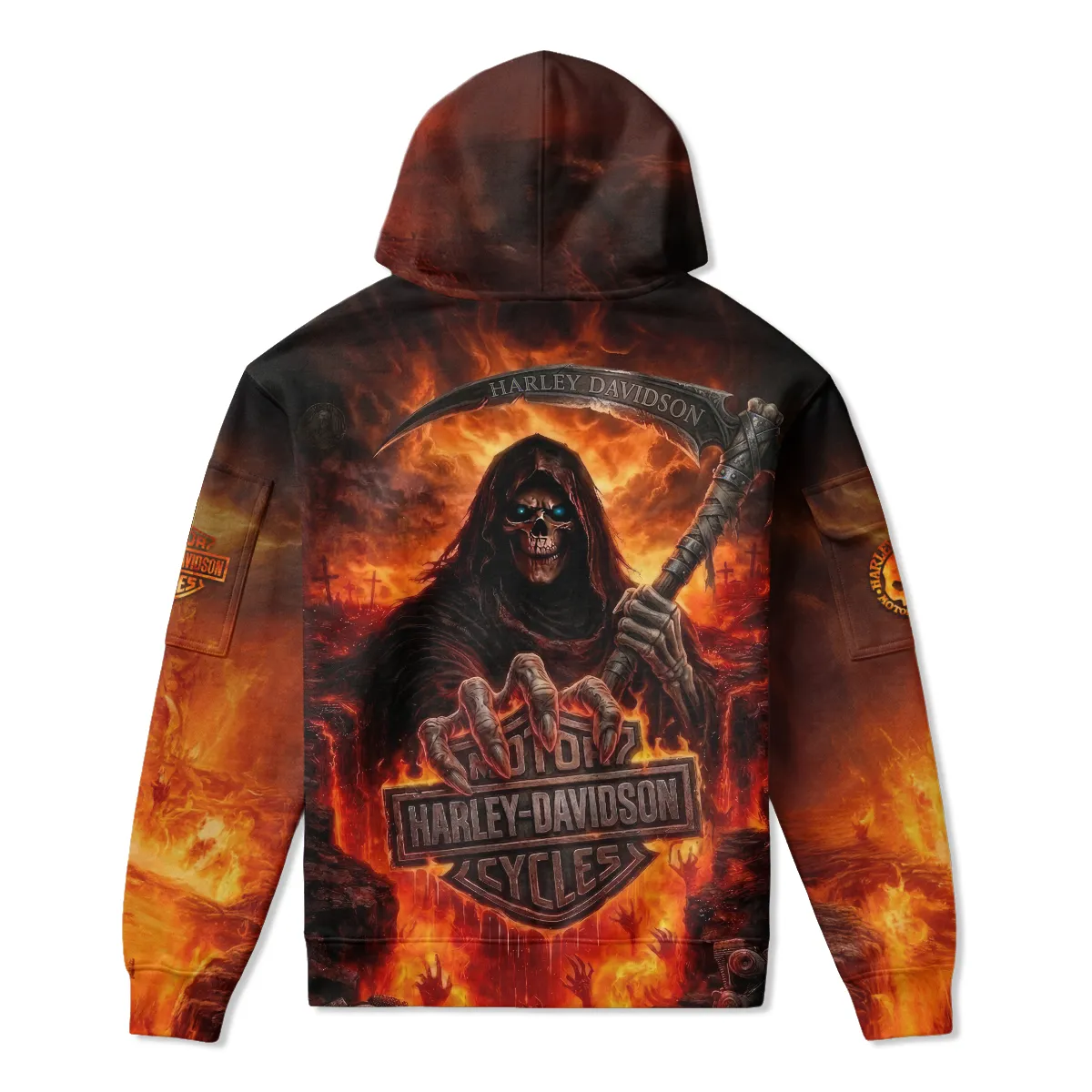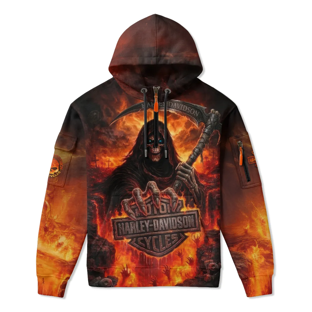 Harley-Davidson Motorcycle Hell Reaper Zip Neck Hoodie All Over Prints Gift Fan Love QTVAHL250226A17-ZLU