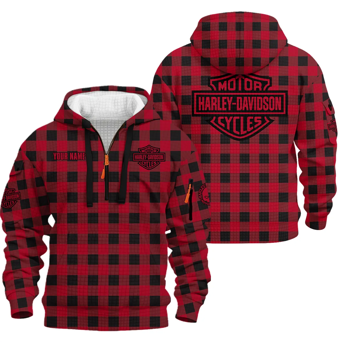Harley-Davidson Motorcycle Hoodie Half Zip Quilted Waffle Gift Fan Love QTHD261225AHD4-HDFQW